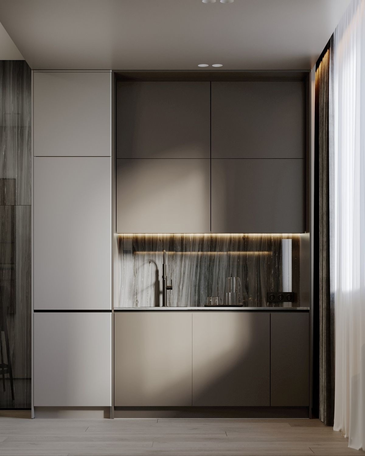 ️ Панель рейка W111 дополнительно вытянет пропорции интерьера вверх и поддержит геометрию других вертикальных элементов: к примеру, труб или светильников.