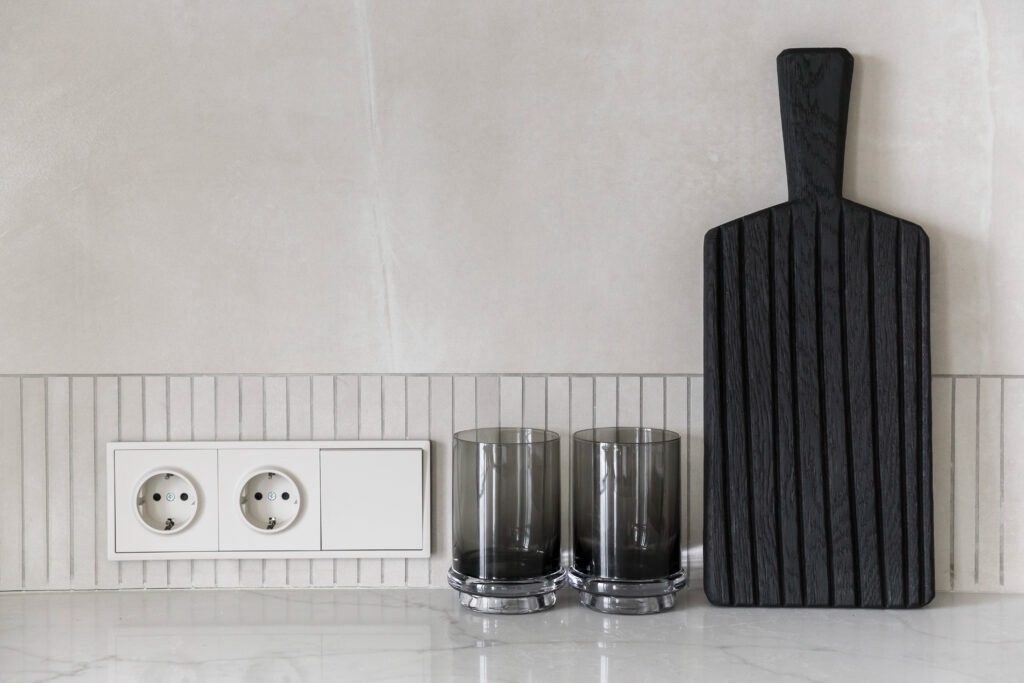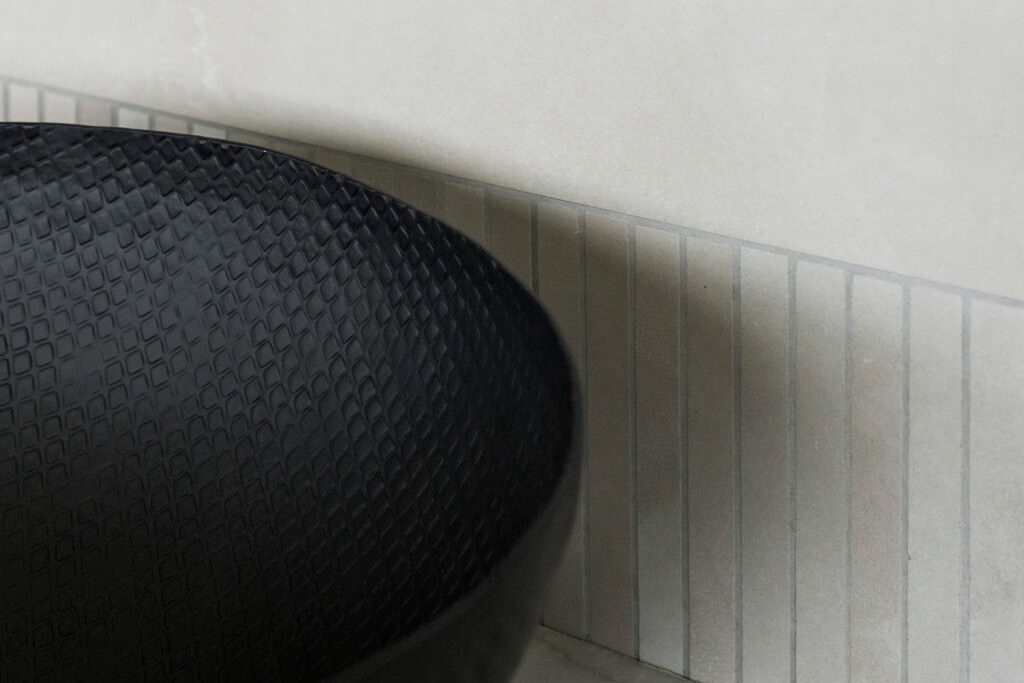 Чтобы добавить характер, дизайнеры используют выразительные акценты. Это может быть керамогранит с металлическим эффектом, плитка под редкий мрамор с активным рисунком или насыщенные однотонные вставки. Именно такие детали придают интерьеру индивидуальность и эмоциональную глубину.