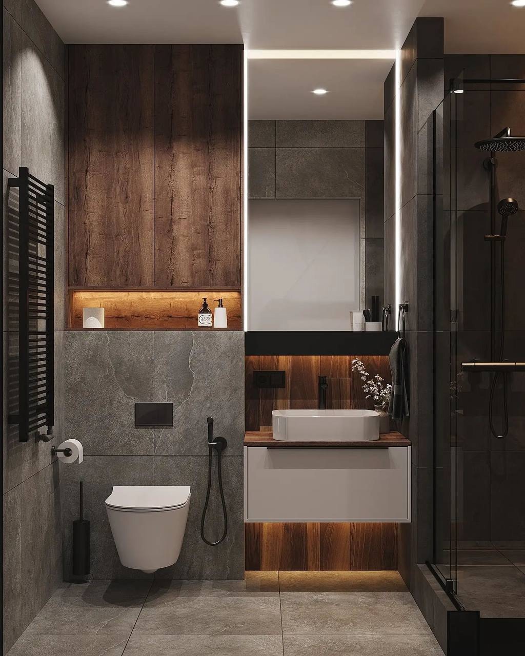 3. Темная ванная из проекта «Контрасты уюта»