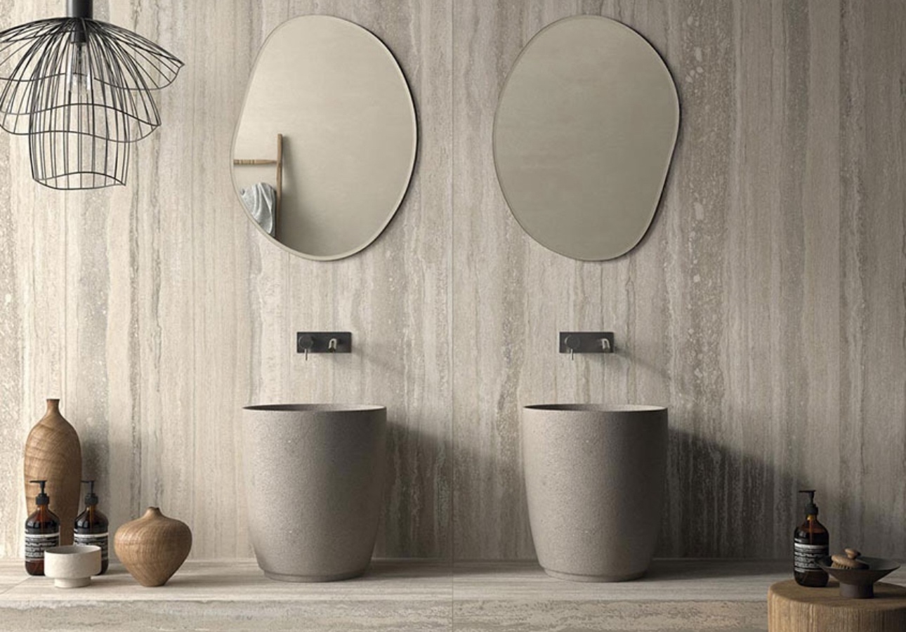 В основе актуальных коллекций — плитка под камень (травертин, песчаник), светлый мрамор, оникс и терраццо. Эти поверхности задают атмосферу спокойствия, служат универсальным фоном и органично вписываются в самые разные стили — от скандинавского до минимализма и современной классики.
