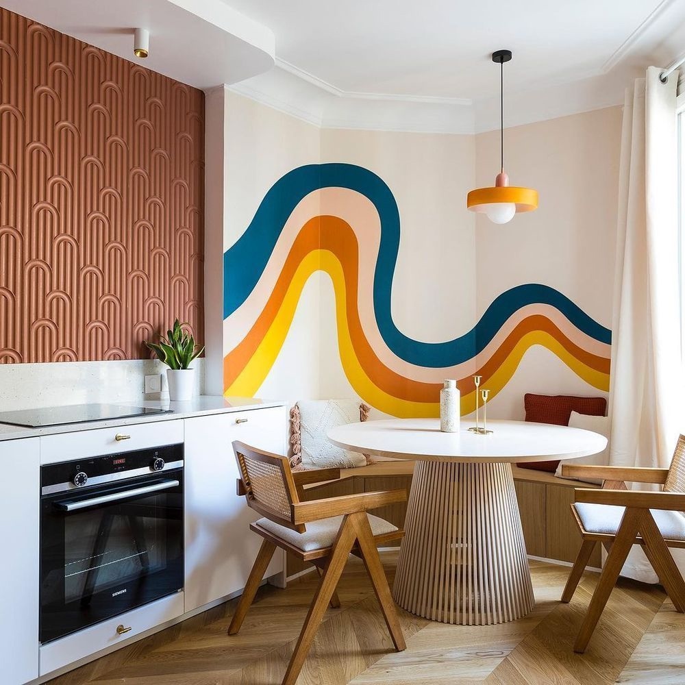️ Стену за диваном в кухне-гостиной реально сделать центром притяжения, выбрав 3D-панель WX204 с некрупным рельефом и выкрасив ее в теплый цвет, перекликающийся с оттенками мебели и другого декора.